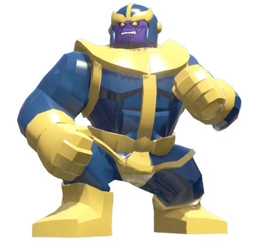- Thanos's LEGO Marvel Avengers design is seen in LEGO Marvel Superheroes 2 in a cutscene in Gwenpool Mission.